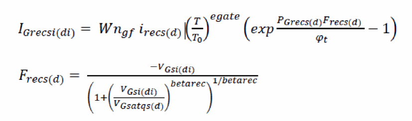In addition to forward current, the reverse GIDL and recombination currents are captured through empirical diode equations to account for drain voltage dependence on reverse-leakage gate currents.
