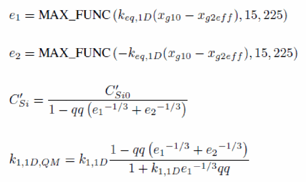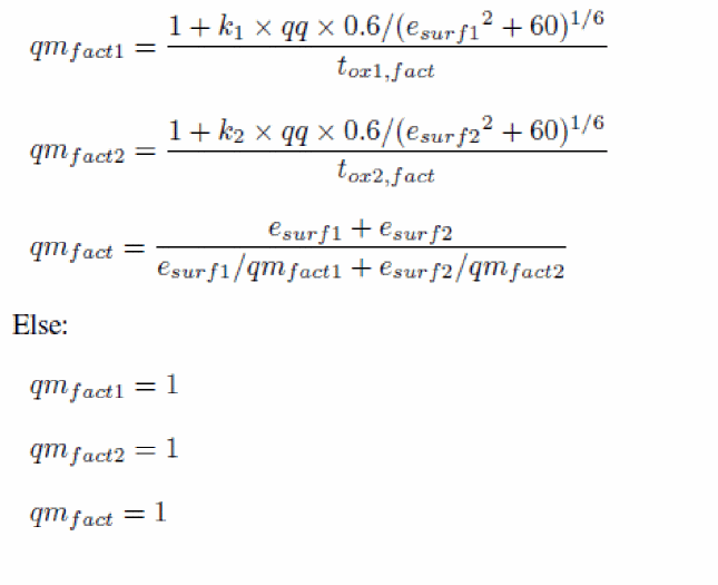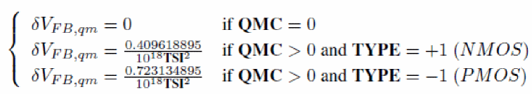 To account for quantum confinement when the effect is activated (QMC>0), the effective geometry of the device is modified. In the correction detailed here, it is assumed that there is no charge in the channel. Note that his correction is only valid in the subthreshold regime.