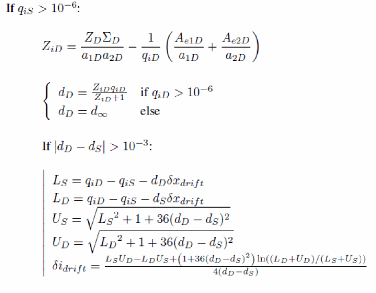 This part is dedicated to the calculation of the MOSFET channel current. Since this calculation preserves the formal symmetry between front and back interfaces, it is valid not only for Ultra-Thin Body and Buried oxide FDSOI transistors, but also for Independent Double Gate MOSFETs.