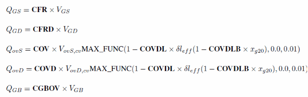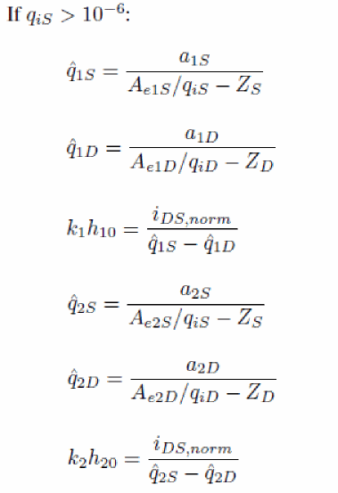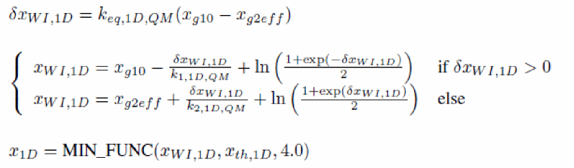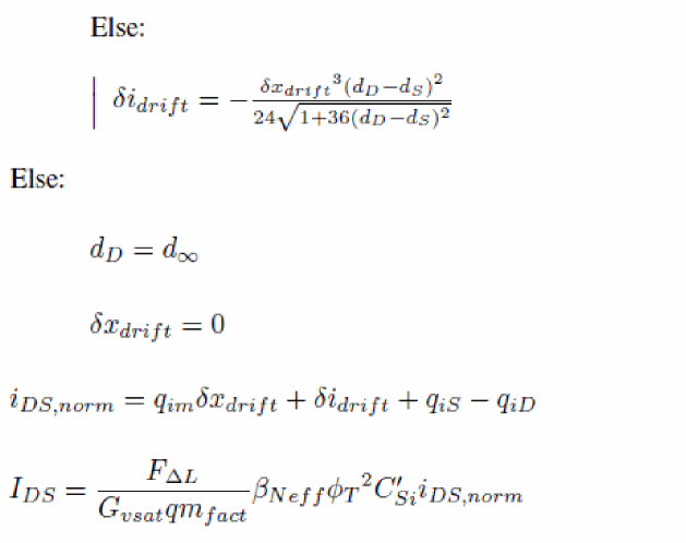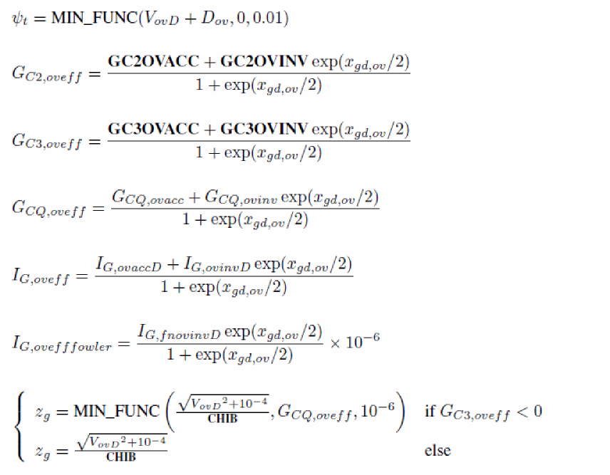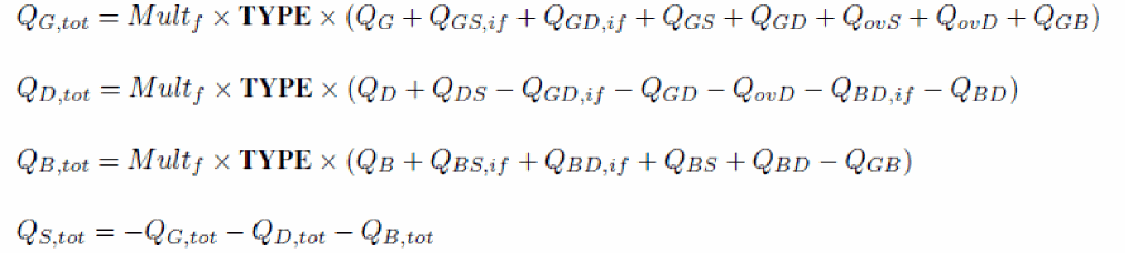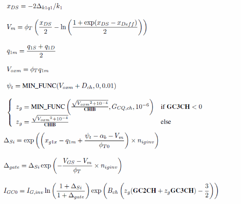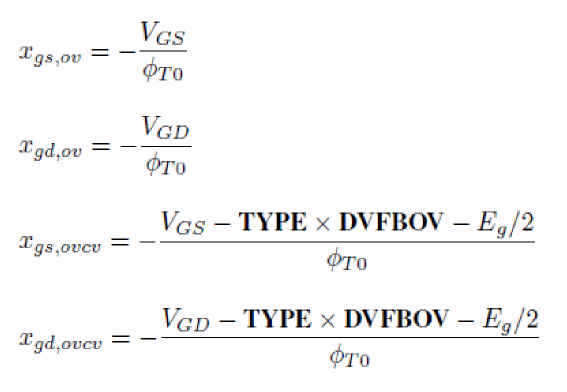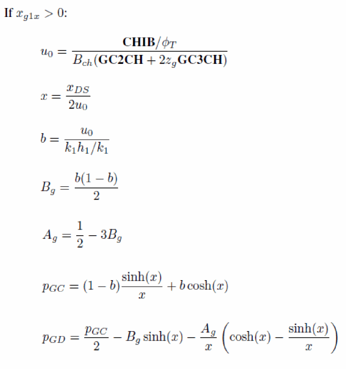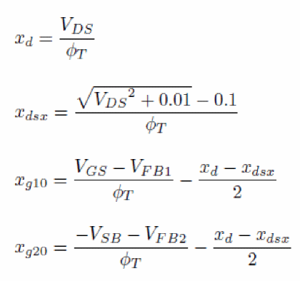 The input voltages used in the model are VGS, VDS and VSB in nMOSFET and positive VDS configuration (that is, sign of external voltages is reversed for pMOSFET, and source/drain are interchanged in case of negative VDS), from which VSD, VGD, VDB and VGB are computed. Then, dimensionless quantities are defined from these voltages.