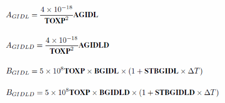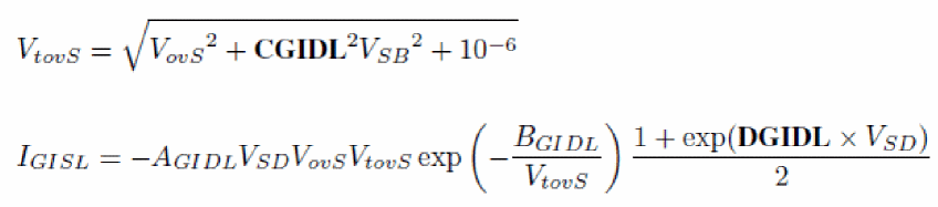 Gate Induced Drain/Source Leakage (GIDL/GISL) internal parameters