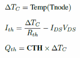 A temperature node named Tnode is used to compute the channel temperature elevation induced by the self-heating effect.