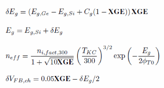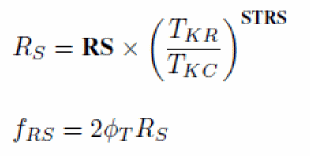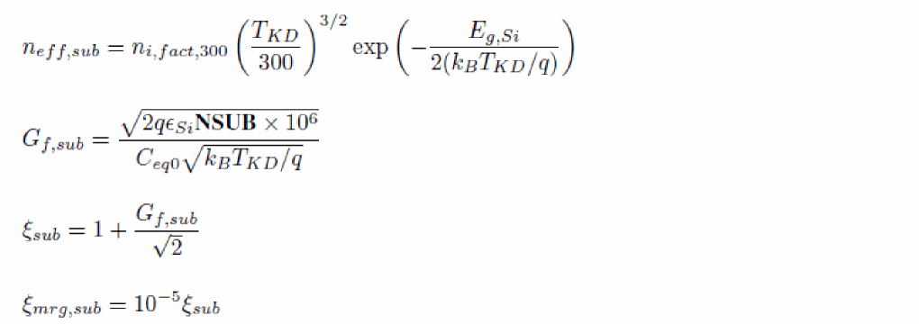 As in Leti-UTSOI1, a temperature node is used to compute the elevation of the channel temperature with respect to the circuit temperature due to self-heating when the SWSHE flag is set to 1. This temperature elevation is given by