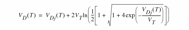 which reduces to the classical equation (that assumes a linear temperature dependence of Vgeff) if mg = 3. Finally, the new built-in voltage is calculated as