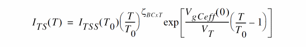 For compact model and application purposes, it is sometimes more convenient to re-write the above equation in terms of a reference temperature T0 (e.g. for parameter extraction), which gives