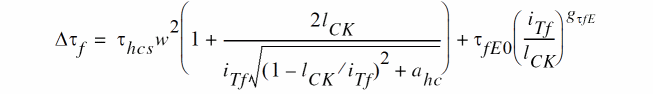The current dependence of Δτf is simplified by neglecting the bias dependent collector current spreading formulation. However, the bias independent collector current spreading factor fcs remains included in the critical current ICK, resulting in a more physical geometry dependence of the low-field internal (epi-)collector resistance.
