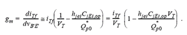 the low-current transconductance at the selected bias point VB’E’,op is given by