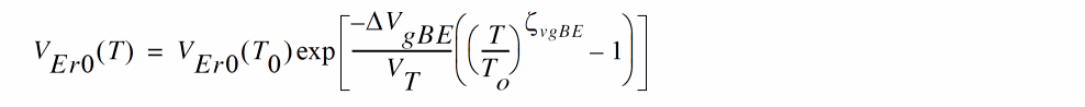 First, the Early voltage at zero volt changes due to the different bandgap in the base and the BESCR. This bandgap difference is used as a parameter along with a non-idealitiy parameter. The equation itself reads:
