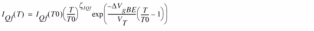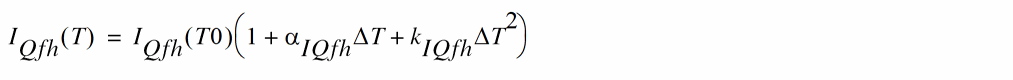 Due to different bandgap voltages in the transistor, high current effects may become also temperature dependent. Since for IQfh, minorities in different regions of the transistor are taken into account, a simple second order polynomial fit is applied, as follows: