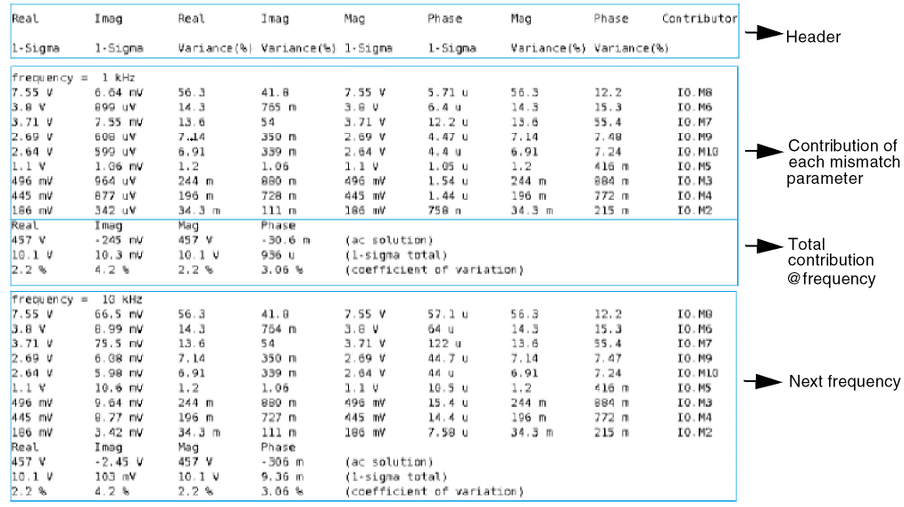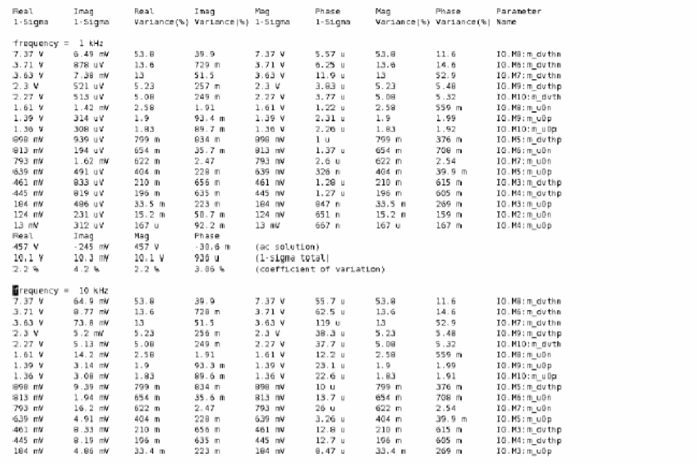dcmatch)—Computes the statistical deviation in the DC operating point of the circuit caused by device mismatch. For more information about the dcmatch analysis, see DC Match Analysis -