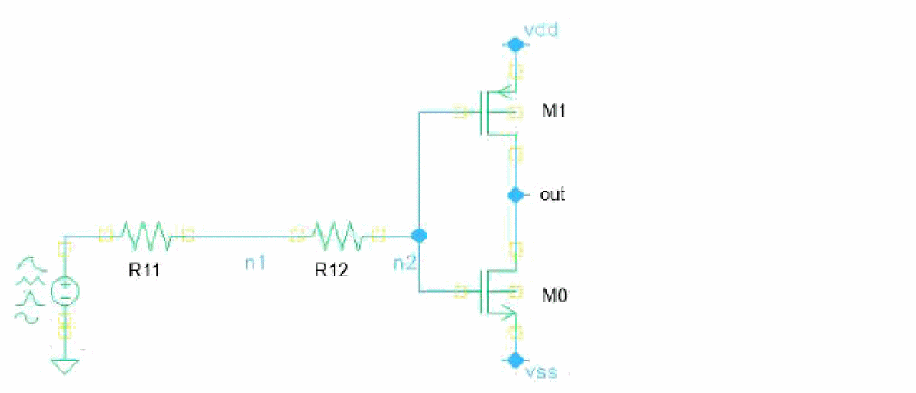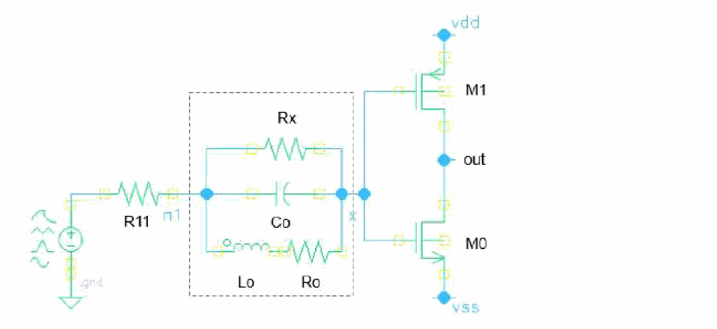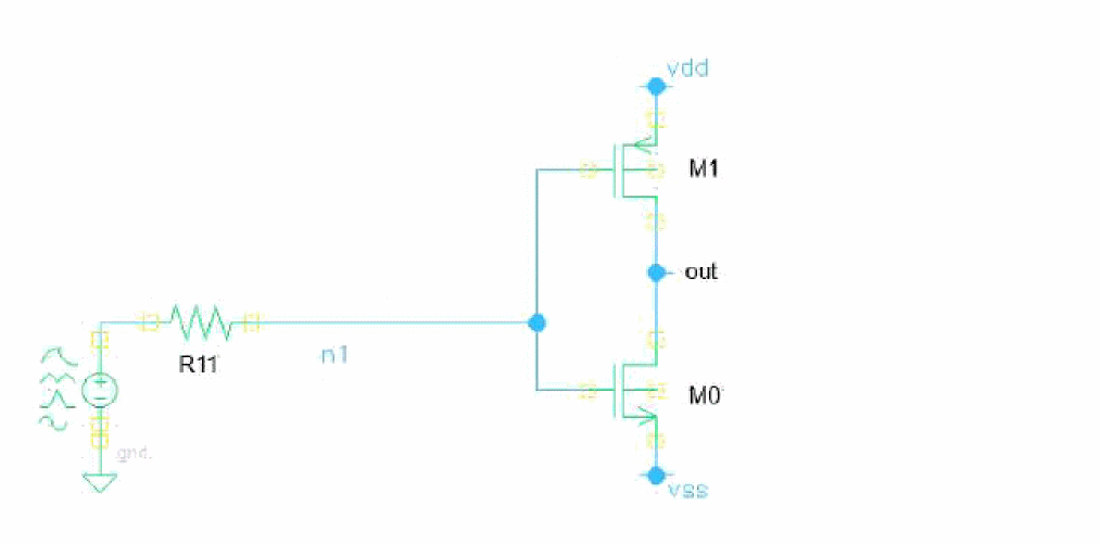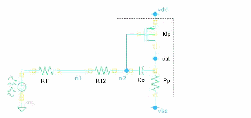 noise)—Linearizes the circuit about the DC operating point and computes the total-noise spectral density at the output. The output can be either a voltage or a current. If you specify an input probe, the Spectre simulator computes the transfer function and the equivalent input-referred noise for a noise-free network. -