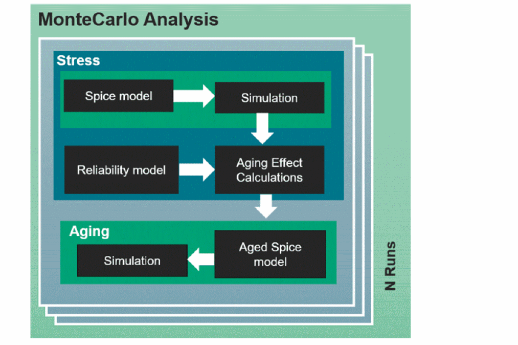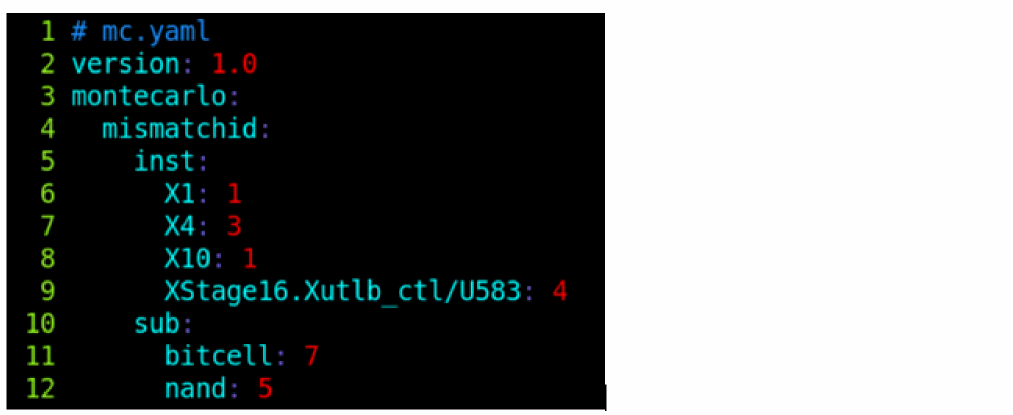 montecarlo)—Varies netlist parameters according to specified distributions and correlations, runs nested child analyses, and extracts specified circuit-performance measurements. You can apply both process and device-to-device mismatch variations and tag device instances as correlated or “matched pairs.” Use the Cadence analog circuit design environment Calculator expressions to measure the circuit performance. You can use the analog design environment graphics tools to plot scalar performance data, such as slew rates and bandwidths, as a histogram or scattergram. You can also display waveform data as cloud (family) plots. For more information about the Monte Carlo analysis, see Monte Carlo Analysis. For more information about using the Monte Carlo analysis with the analog design environment, see the Advanced Analysis Tools User Guide.