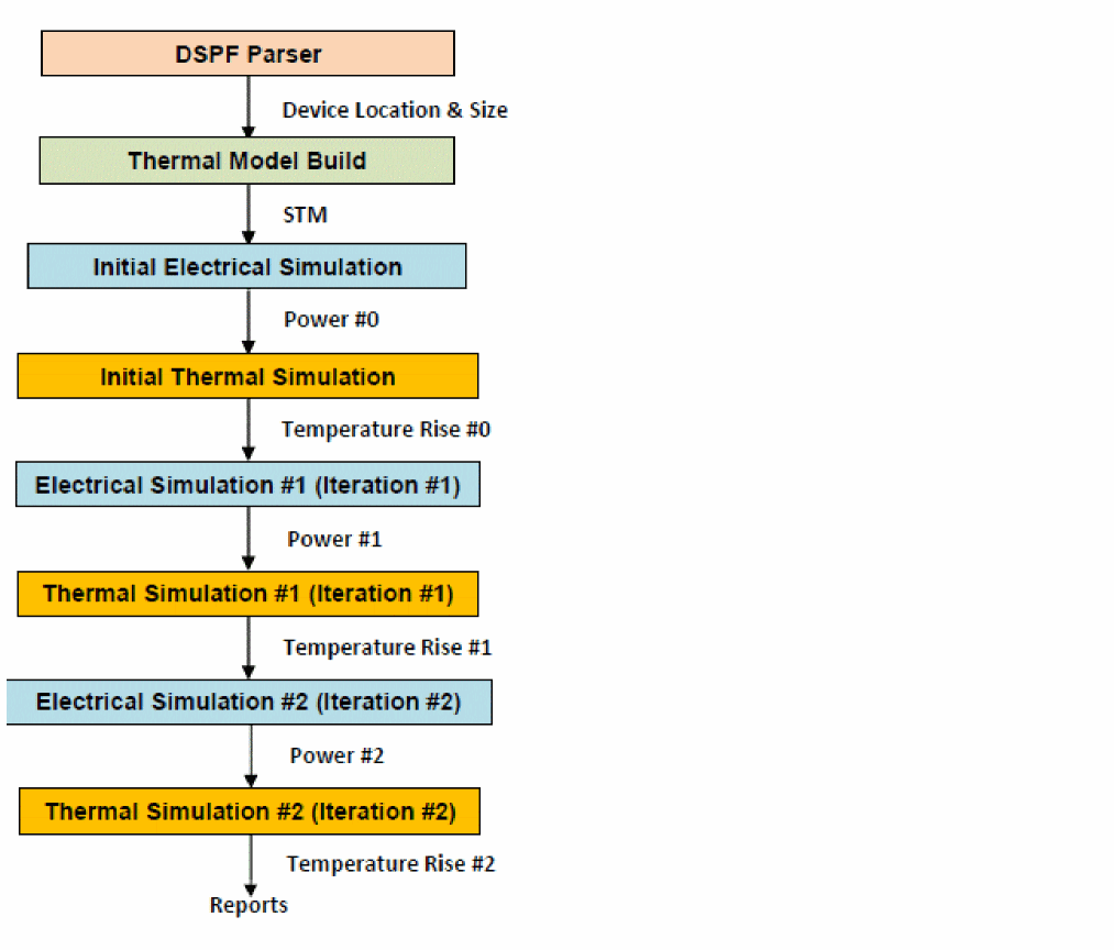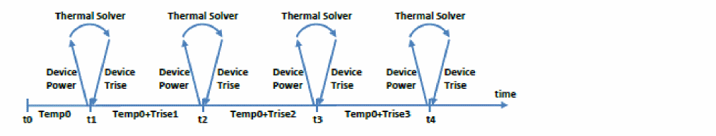 The resulting temperature rise on each device is then used to set the device temperature on each device for the next iteration of the electrothermal simulation.
