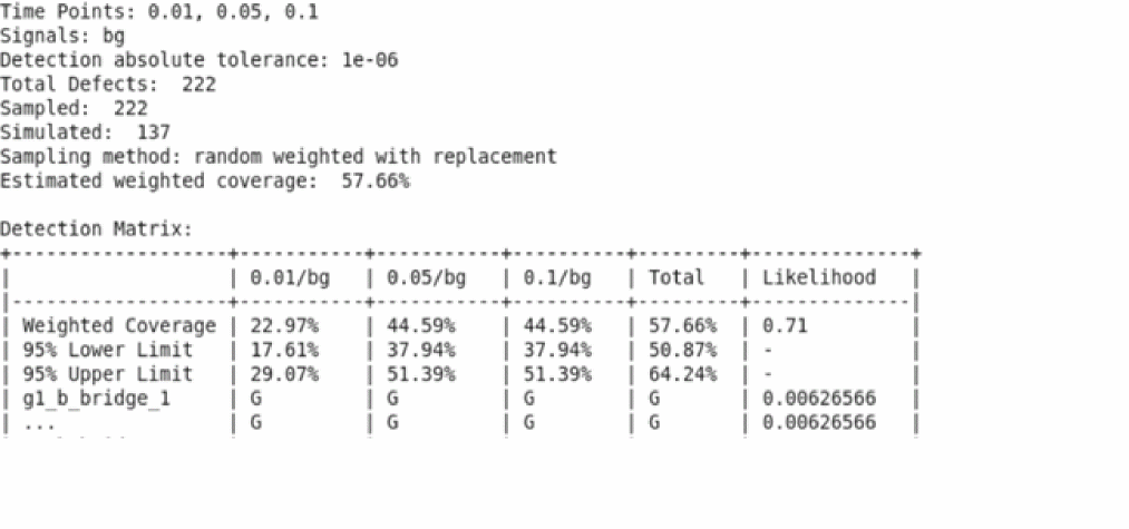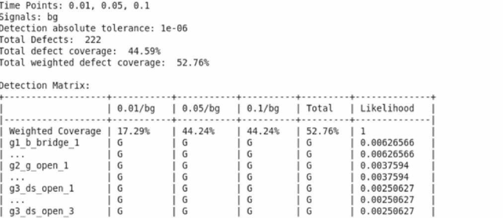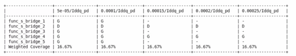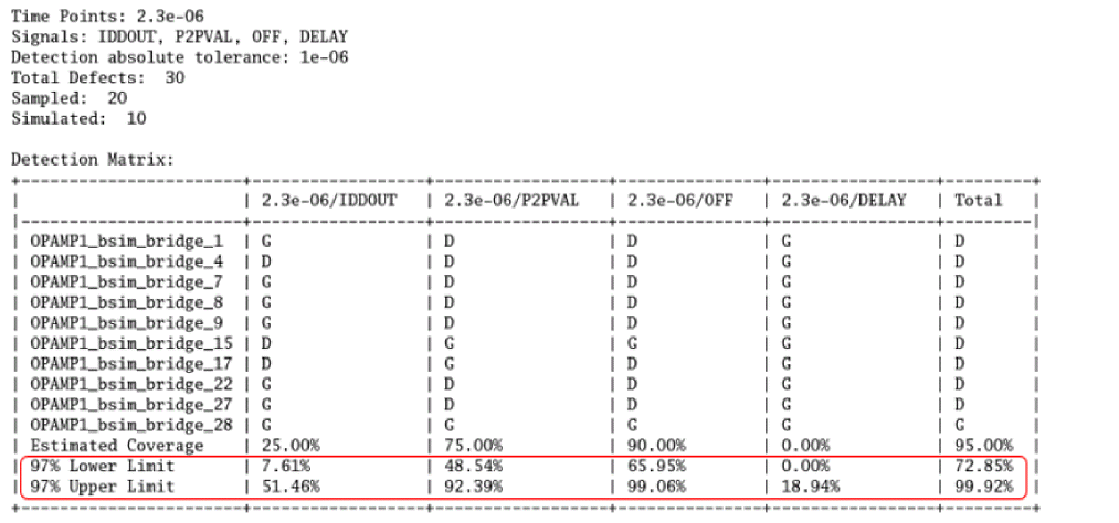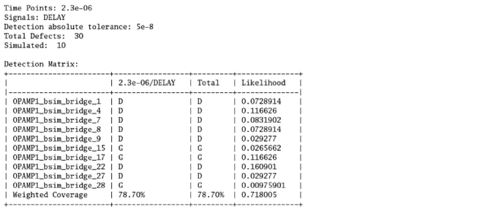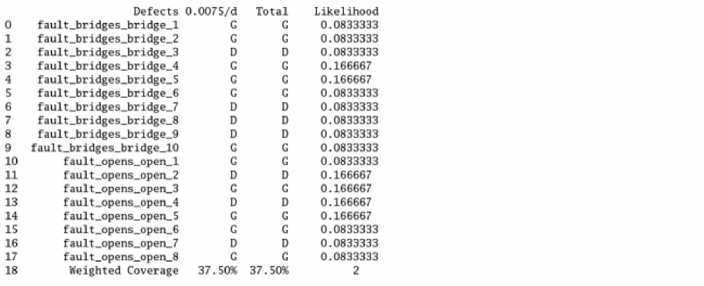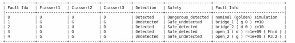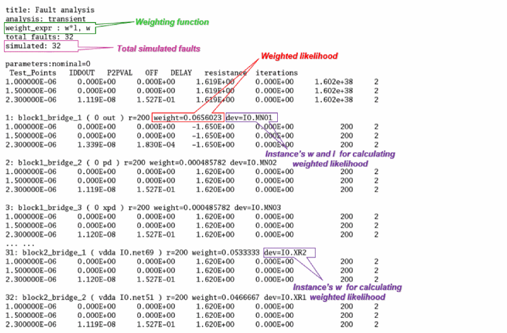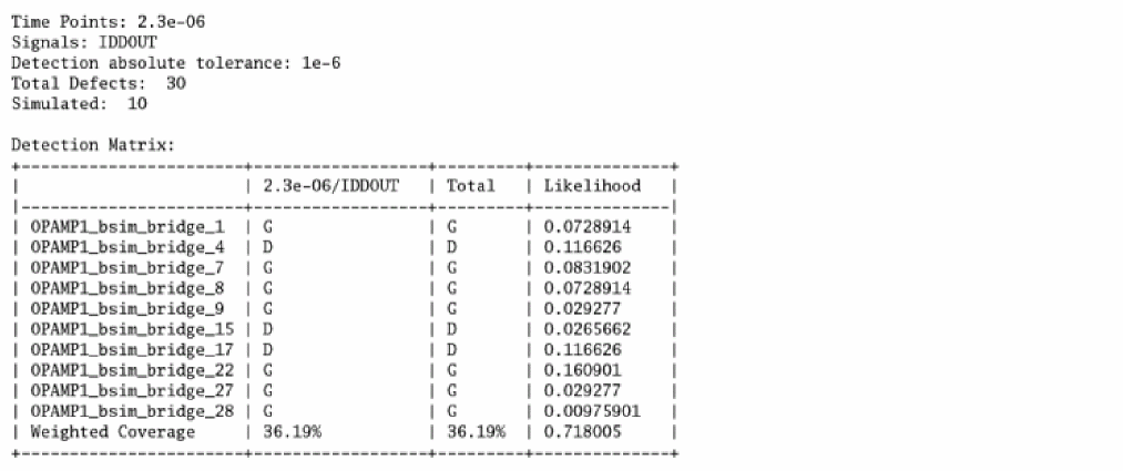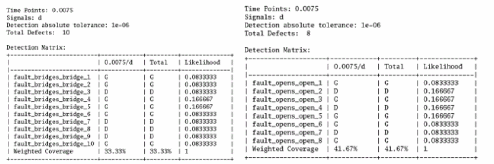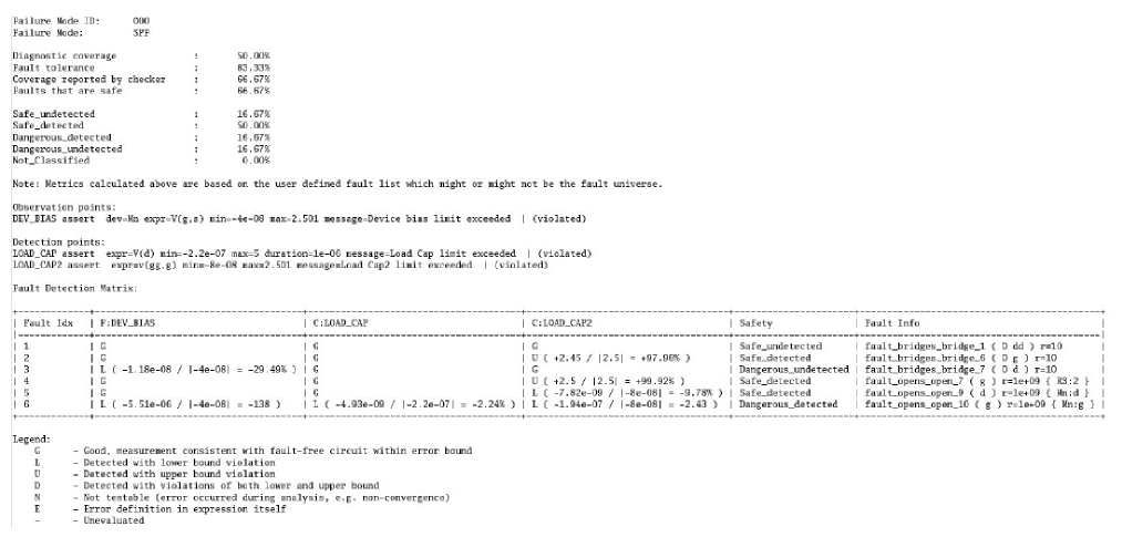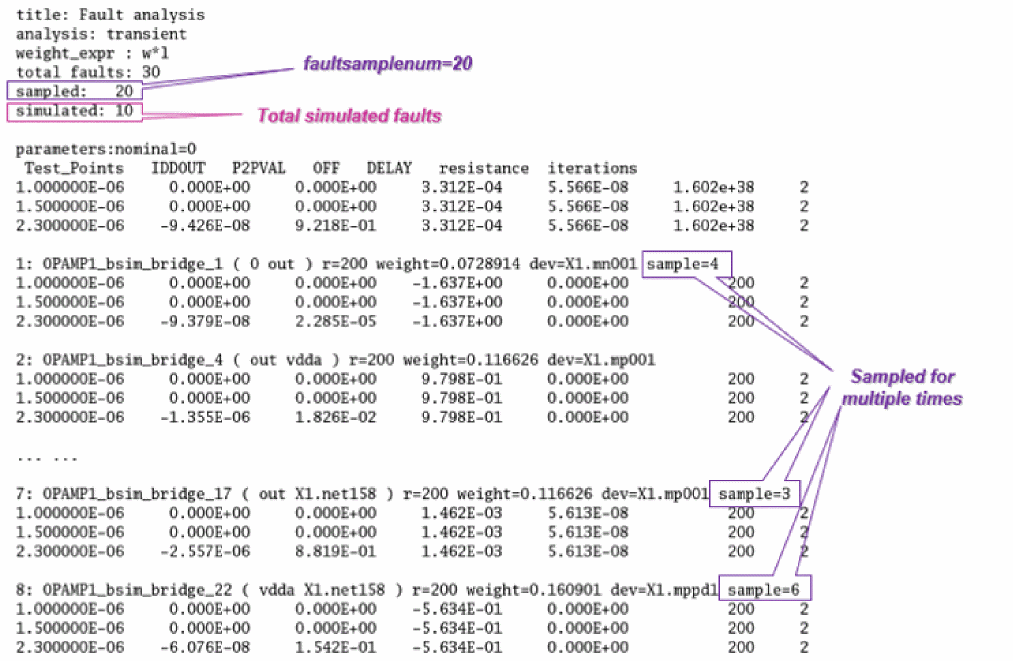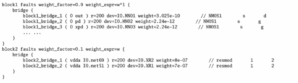 fault)—Provides a transistor-level simulation capability that can be enabled in an analog test methodology to improve test coverage by identifying critical test patterns. Spectre transient fault analysis is very fast in handling a large numbers of faults. Spectre direct fault analysis provides high accuracy results when full fault analysis precision is required. For more information, see Fault Analysis. -