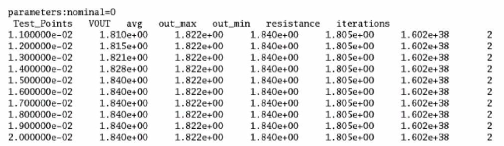 At this point, Spectre is ready to perform electrical simulation to produce device power values required for electrothermal simulation. This step is simply a regular circuit simulation, where Spectre first parses the circuit, reports circuit inventory, initiates a DC analysis, and finishes the step with a transient analysis.