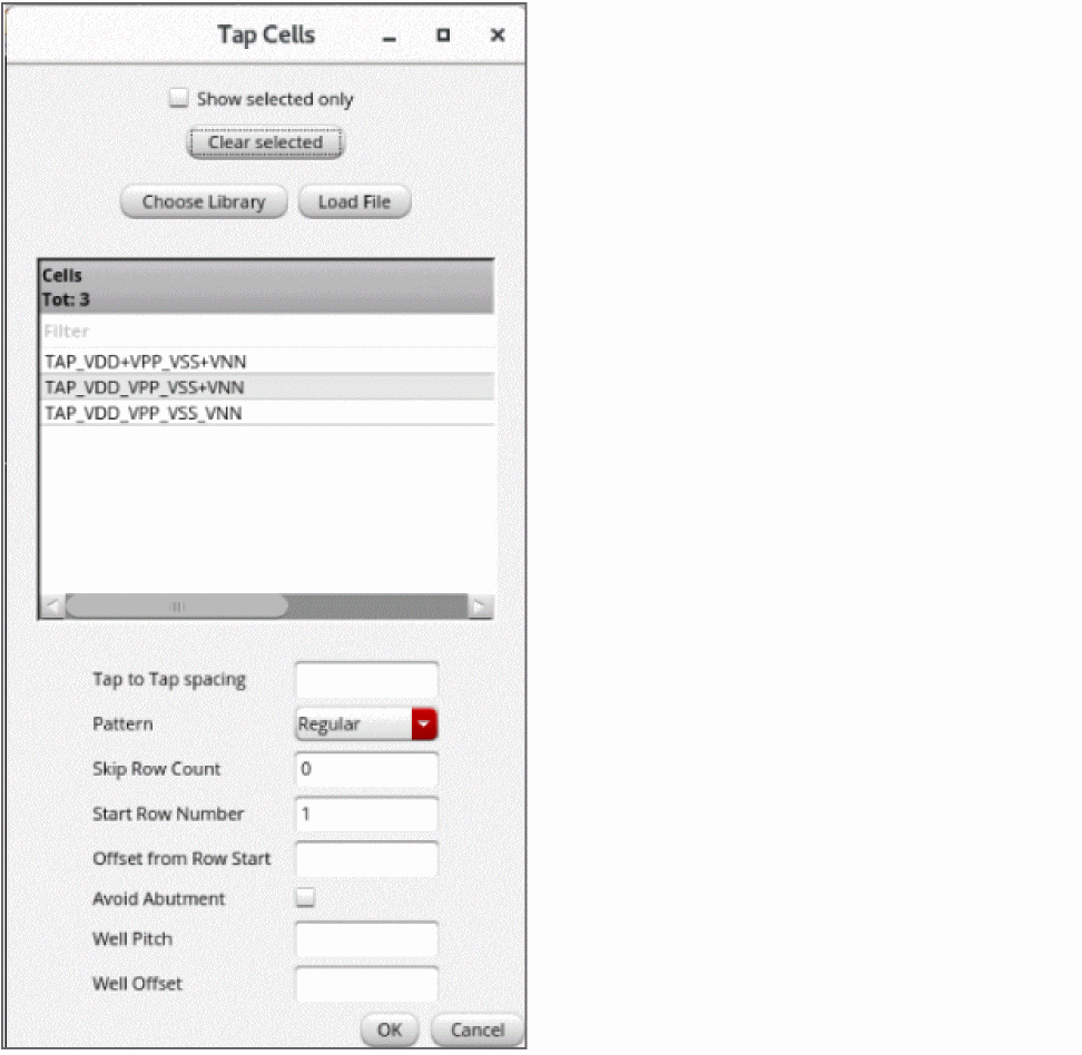 From the Pattern list, select the pattern in which tap cells are to be inserted: Regular or Checker Board.