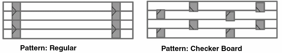 The Skip Row Count and Avoid Abutment settings are not available when the Checker Board pattern is selected.