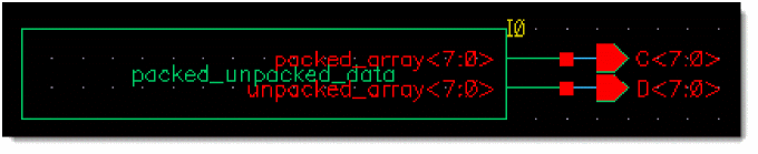 SystemVerilog Integration Environment supports the netlisting of designs with ports of the type packed array or unpacked array. Consider a design library test that contains the following SystemVerilog definition of module packed_unpacked_data.