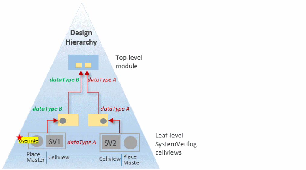 The SystemVerilog Integration Environment supports data type propagation from leaf-level SystemVerilog cellviews to the top-level schematic design hierarchy. During data type propagation, conflicts can occur in the following cases.