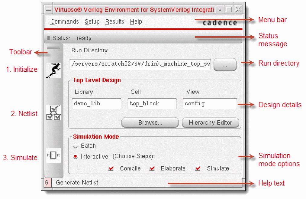 - Integration with Cadence® SimVision to let you simulate and debug designs in interactive mode
