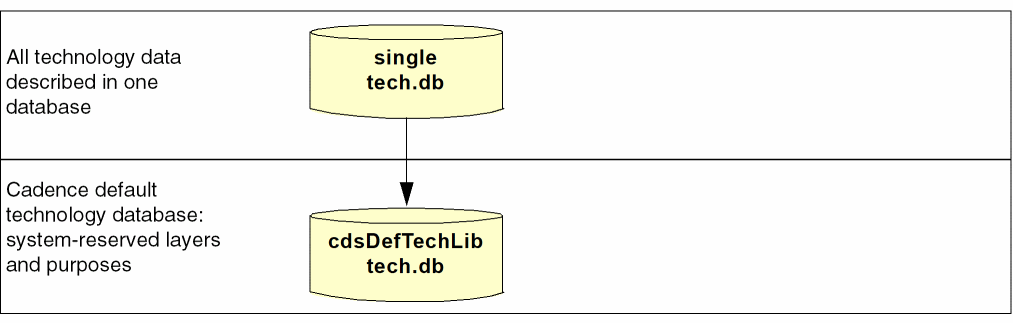 Creation of any technology database automatically creates a reference to the Cadence default technology database, cdsDefTechLib. This default technology library defines all system-reserved layers and purposes. If system-reserved layers and purposes are in the compiled technology file, they are removed; defining them in two databases constitutes a conflict.