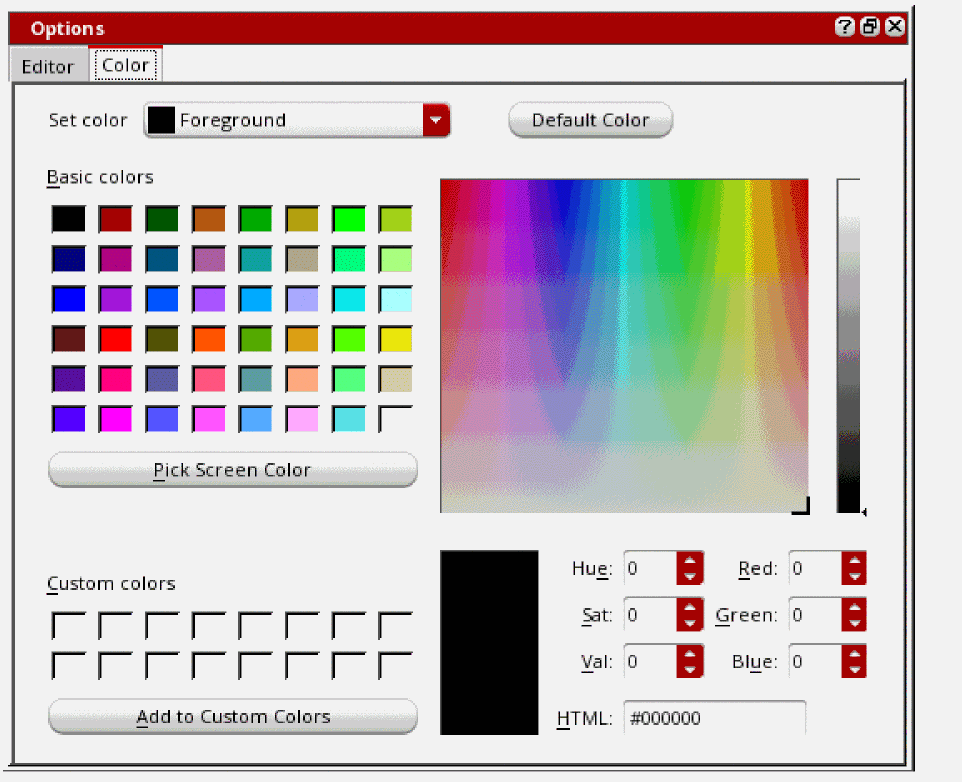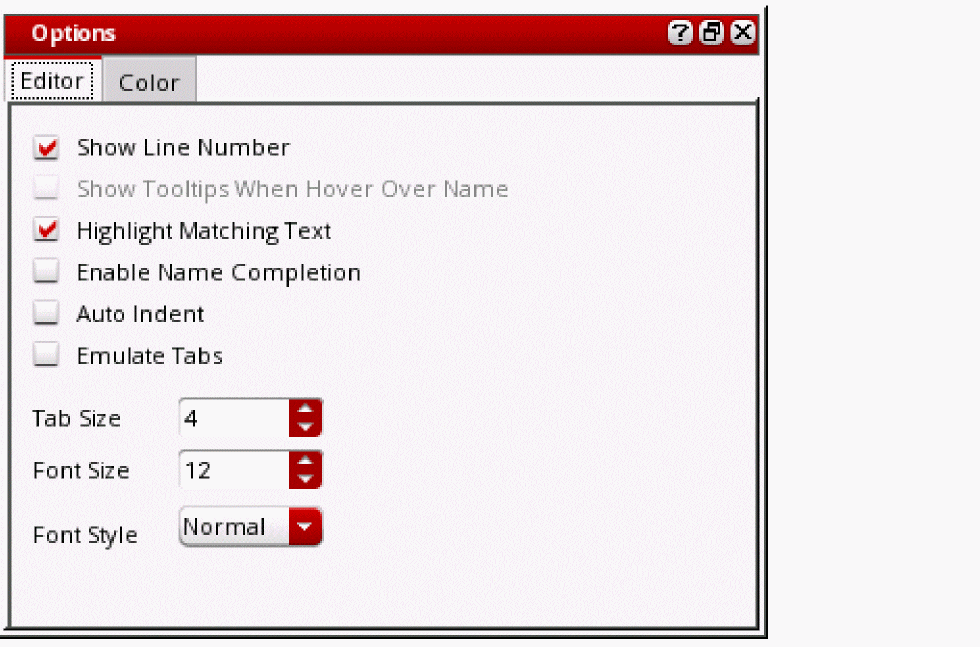 The Options form helps you set generic editor options and color options in the text editor.