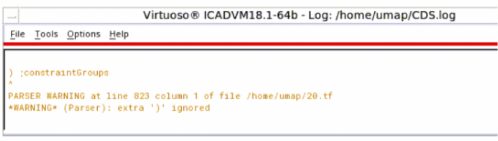 Ensure that you follow the structure of and requirements for specifying ASCII technology file data as described in Virtuoso Technology Data ASCII Files Reference.