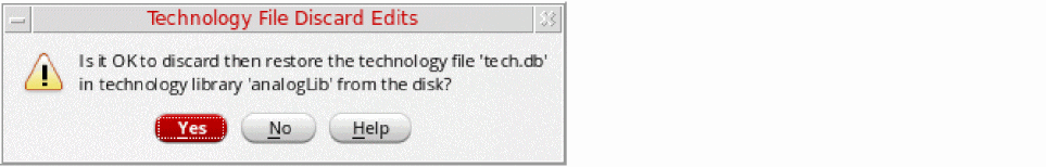 A dialog box appears, asking you to confirm the save to disk. Click Yes. The technology library in virtual memory is saved to disk.