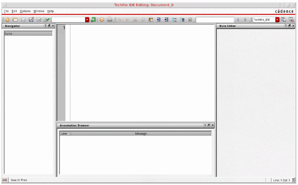 When a technology file is open, the Techfile IDE window appears as follows.