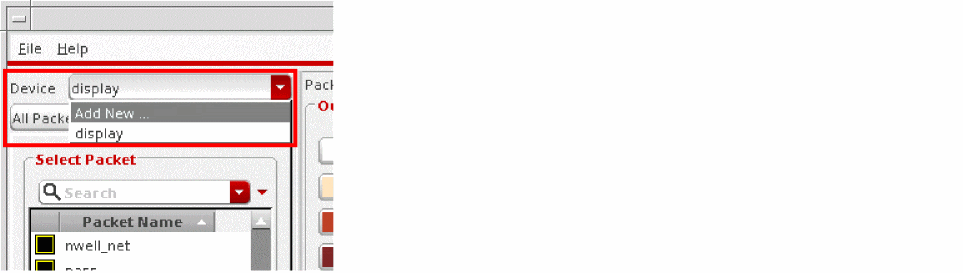 To find a display packet with a specific name, type the name in the Search text box. As you type each character, the list below is automatically updated to display the packets or layer-purpose pairs that match the search string. Click the Clear button to cancel the filter.