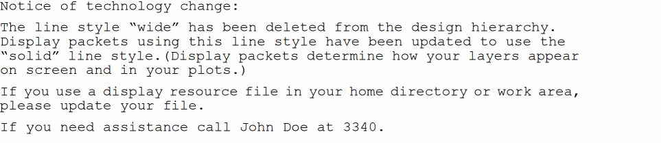 Technology files reference display packet names. Therefore, before you delete a display packet, ensure that your technology files do not reference that display packet. As a precaution, consider leaving unused display packets in your display resource file for later use.