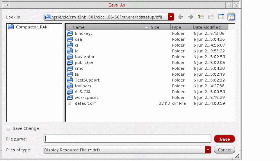 - Ensure that the Save Change check box is deselected if you want to save all the display resource data currently loaded in virtual memory. To save only the display resource data modified during the current design session, select the Save Change check box.