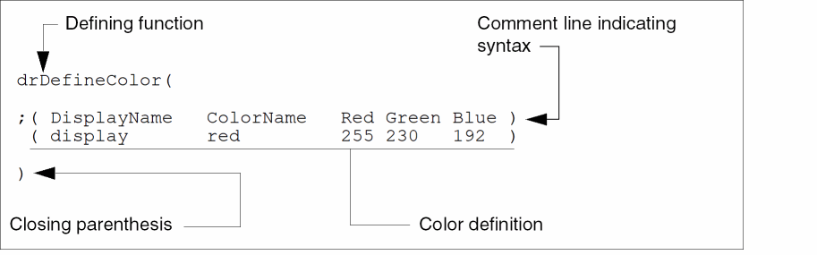 - Paste the customized display resource definitions into a source display resource file. For more information, see How Cadence Design Software Handles Multiple Display Resource Files.