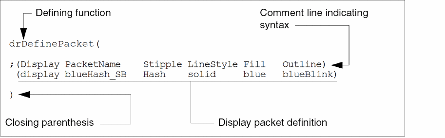 Display packets control how layers are displayed and plotted in designs. A display packet can be common to many layers. When you change the definition of a display packet, all layers that use that display packet are automatically updated.
