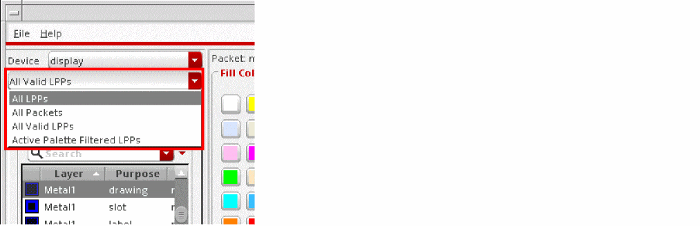 - All Valid LPPs: Displays all valid LPPs for the selected technology file. If a Palette is open, then the LPP selected in the Palette is automatically selected in the DRE form.