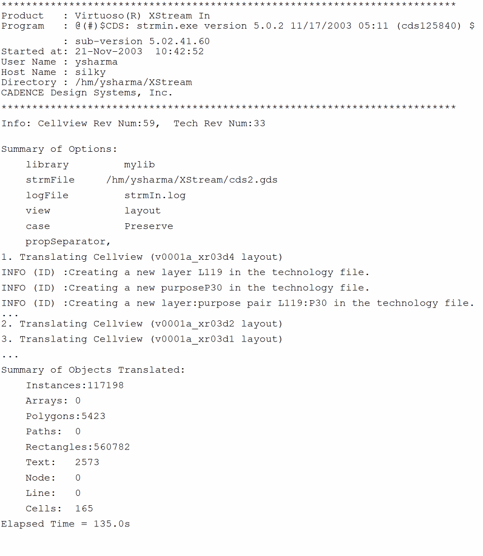 XStream In GDSII to virtual memory requires space for storing temporary data, though the OpenAccess designs are not saved on disk.