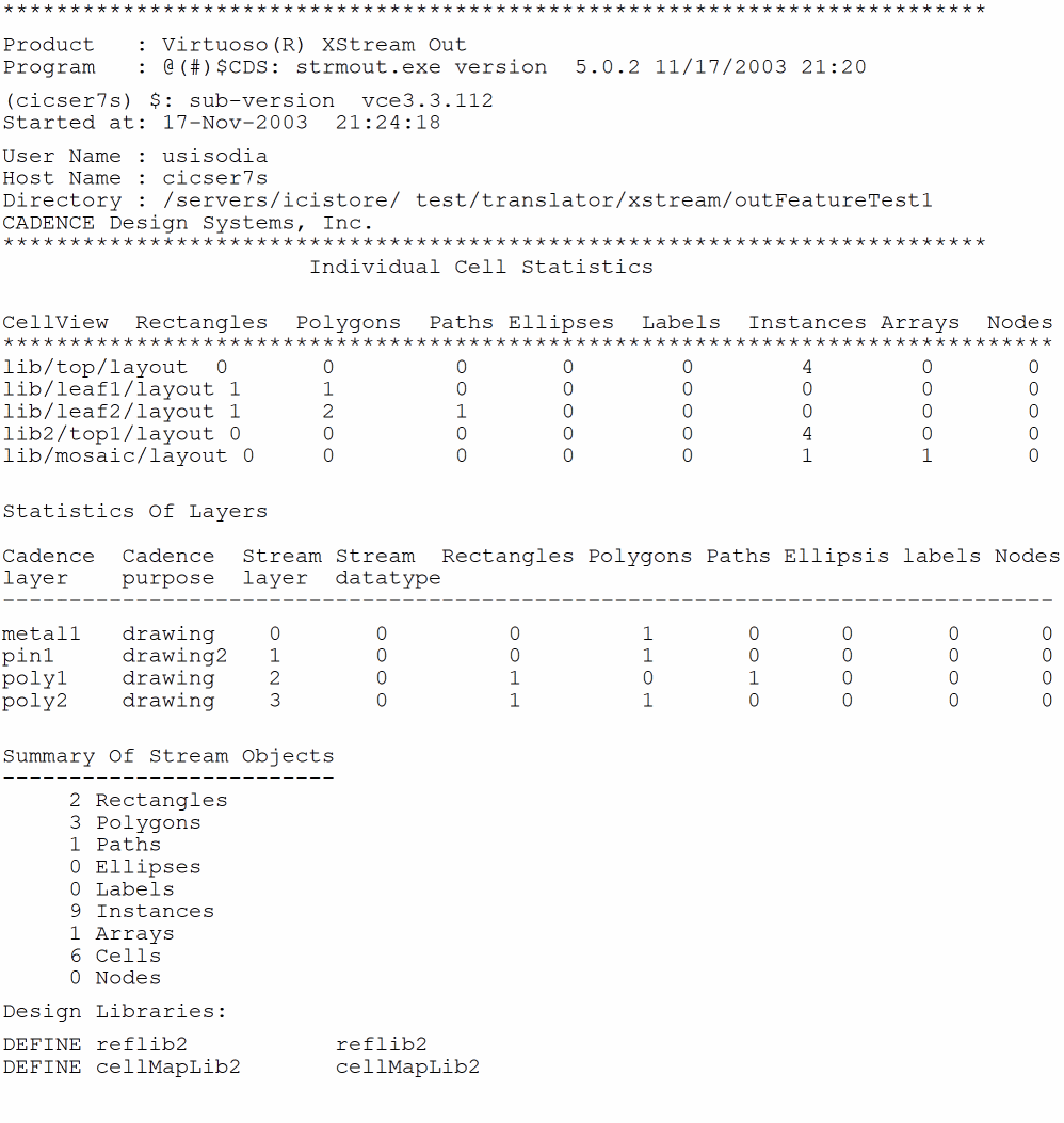 Since the OpenAccess library structure complies to 5.x architecture, the total number of cells in a library can go only upto the maximum number of sub-directories that are supported by the UNIX filesystem(32,767). This limits XStream to support only those Stream files that have less than 32,767 cells, which are to be translated in a library.