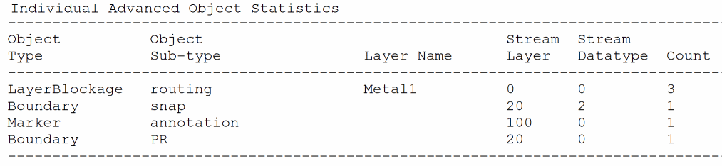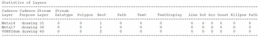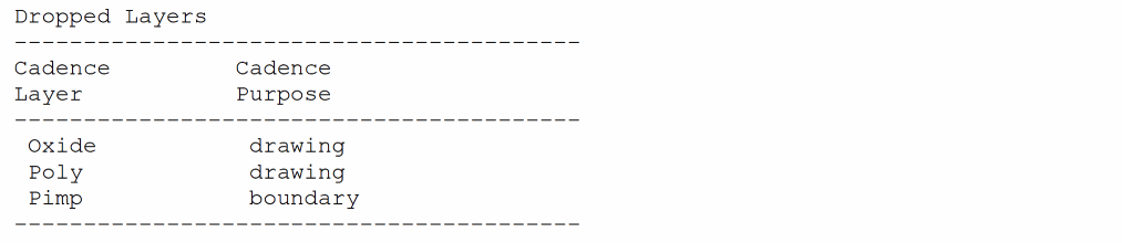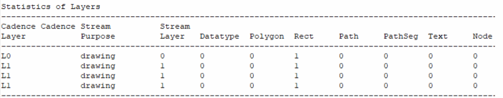 <techFileName>.layermapfile is generated with oaLayer and oaPurpose to Stream layer and datatype mapping. This file contains the layer map entries in the form of quadruplets:<oaLayer oaPurpose streamLayer dataType>.