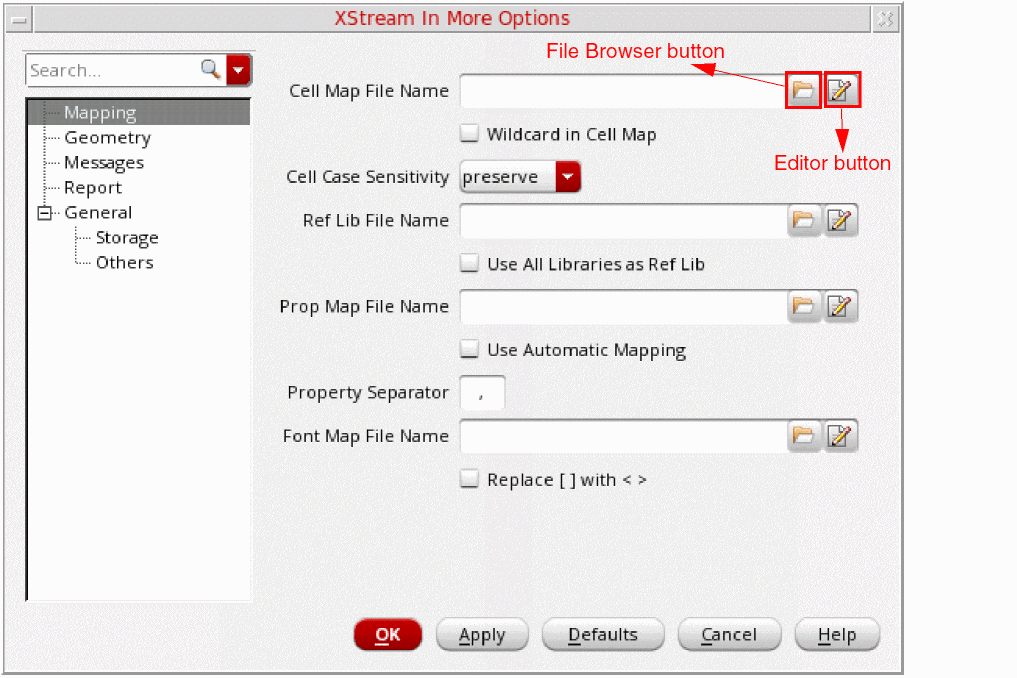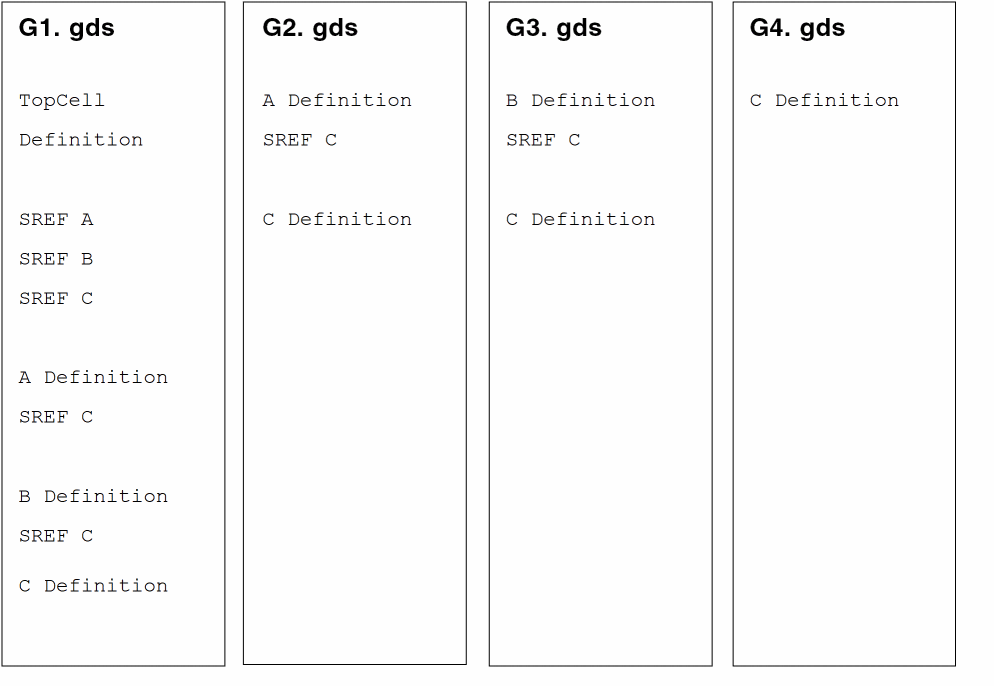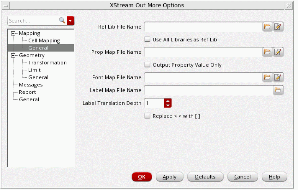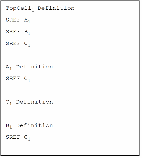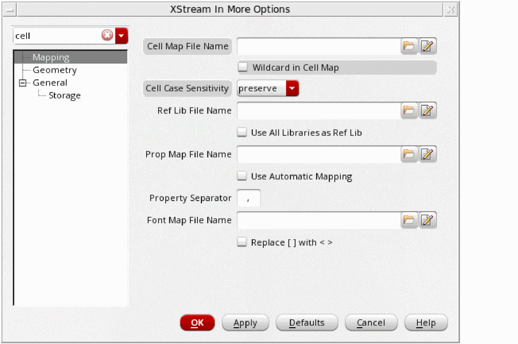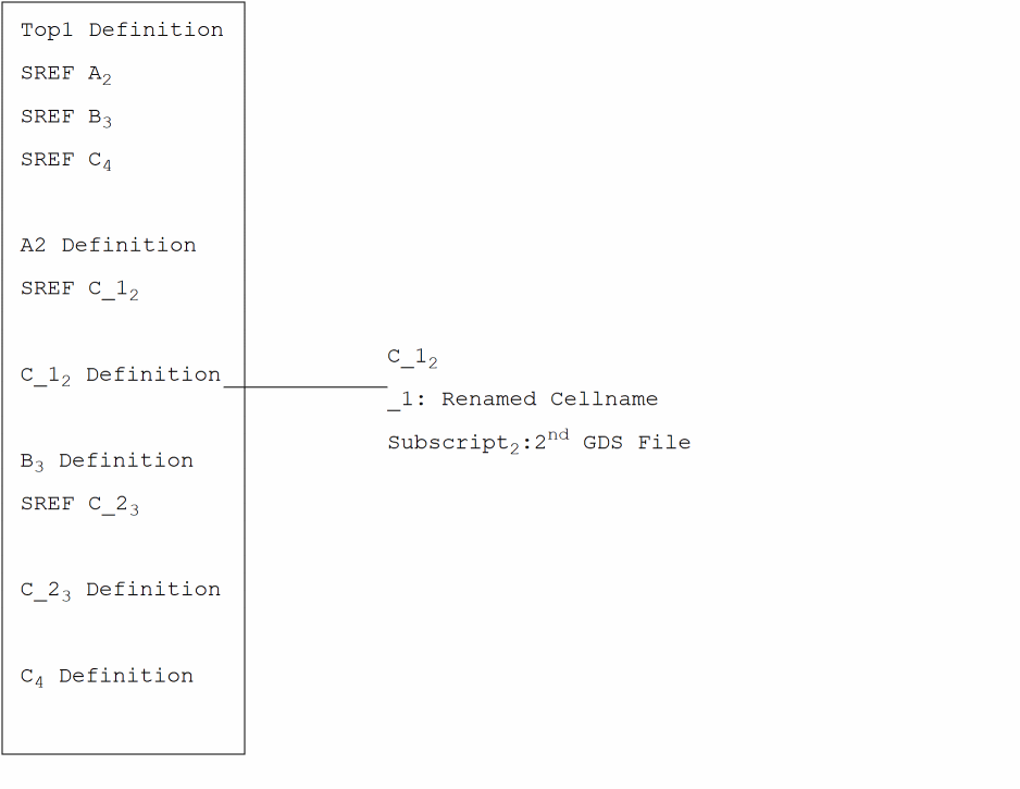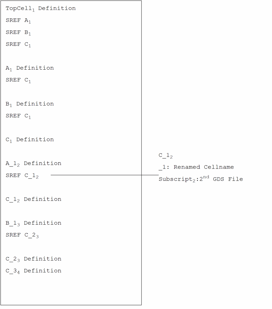 If you provide a proper reference library name for a structure (cellview) in the cell name map file, then XStream does not search for that cellview in the list of libraries. Therefore, a cell name map file can also provide speed advantage when you use the Reference Library List option. -