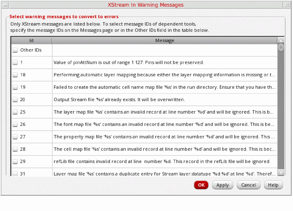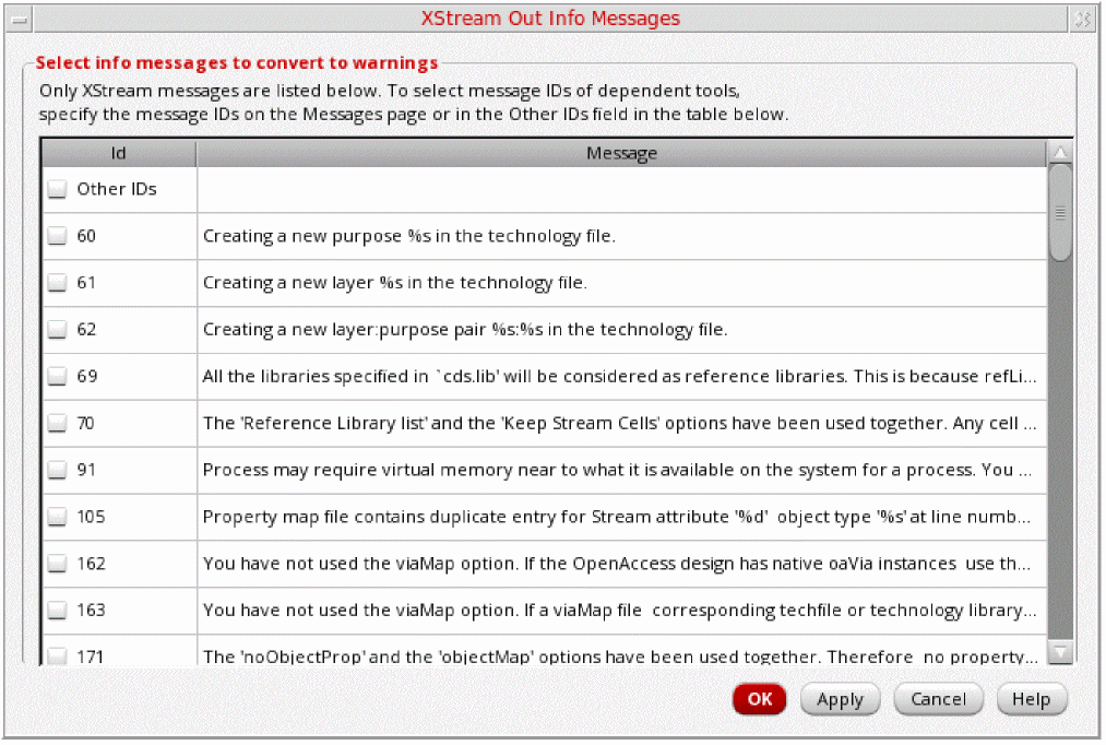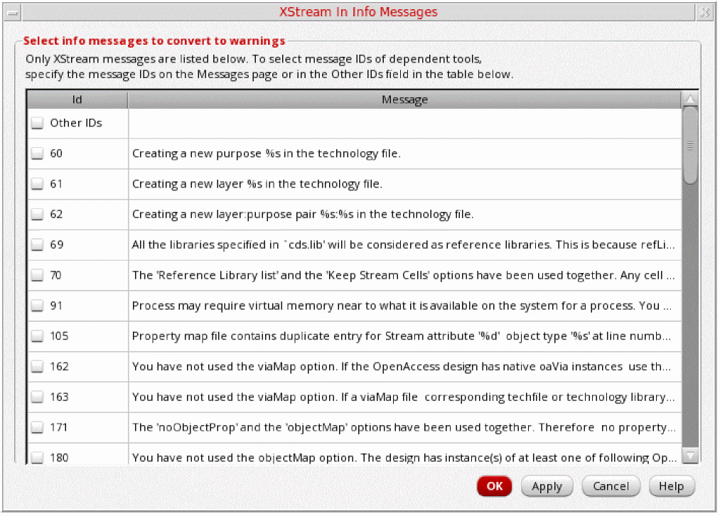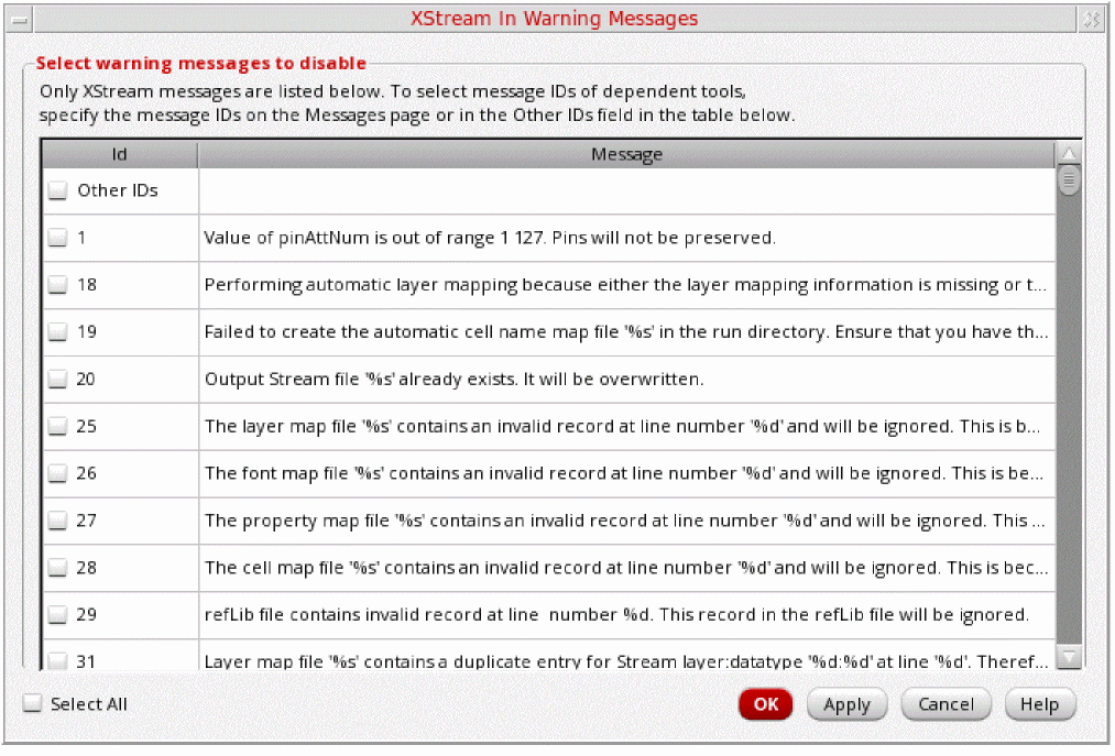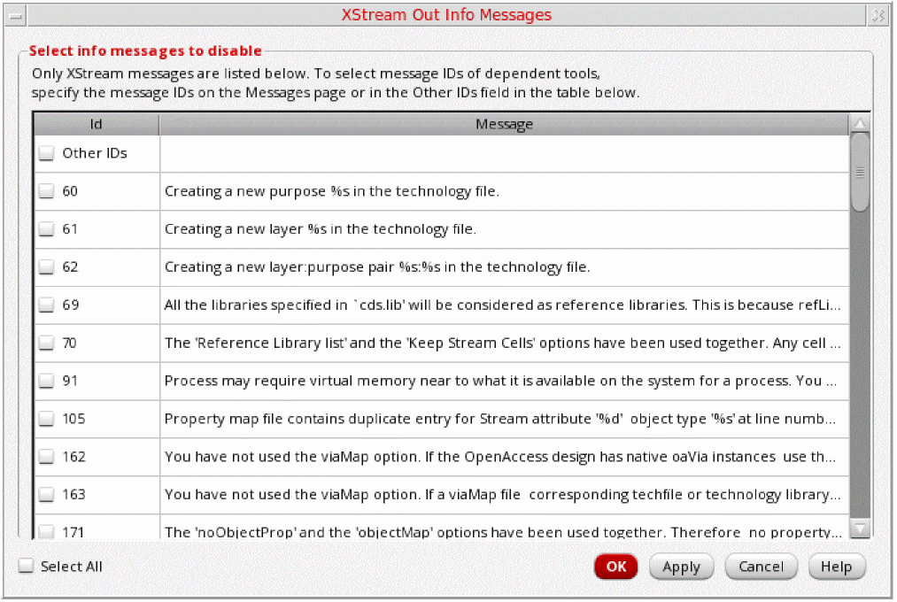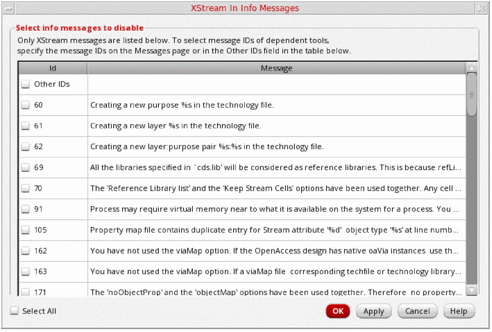 Use the Disable file locking option to disable file locking during XStream In. By default, file locking will not be disabled. The disabling of file locking reduces the run time of XStream In especially if the designs contain a large number of cellviews in their hierarchy or library.