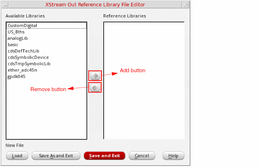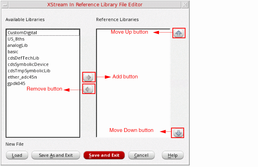 Suppose you are having a number of reference libraries incds.liband a design or a sub design/module is using a small fraction of the libraries that are being used. In another case, the libraries defined incds.libmay not get ordered in an optimal fashion to minimize the search for a referenced cell during XStream In. In such a case, use the Reference Library List option.