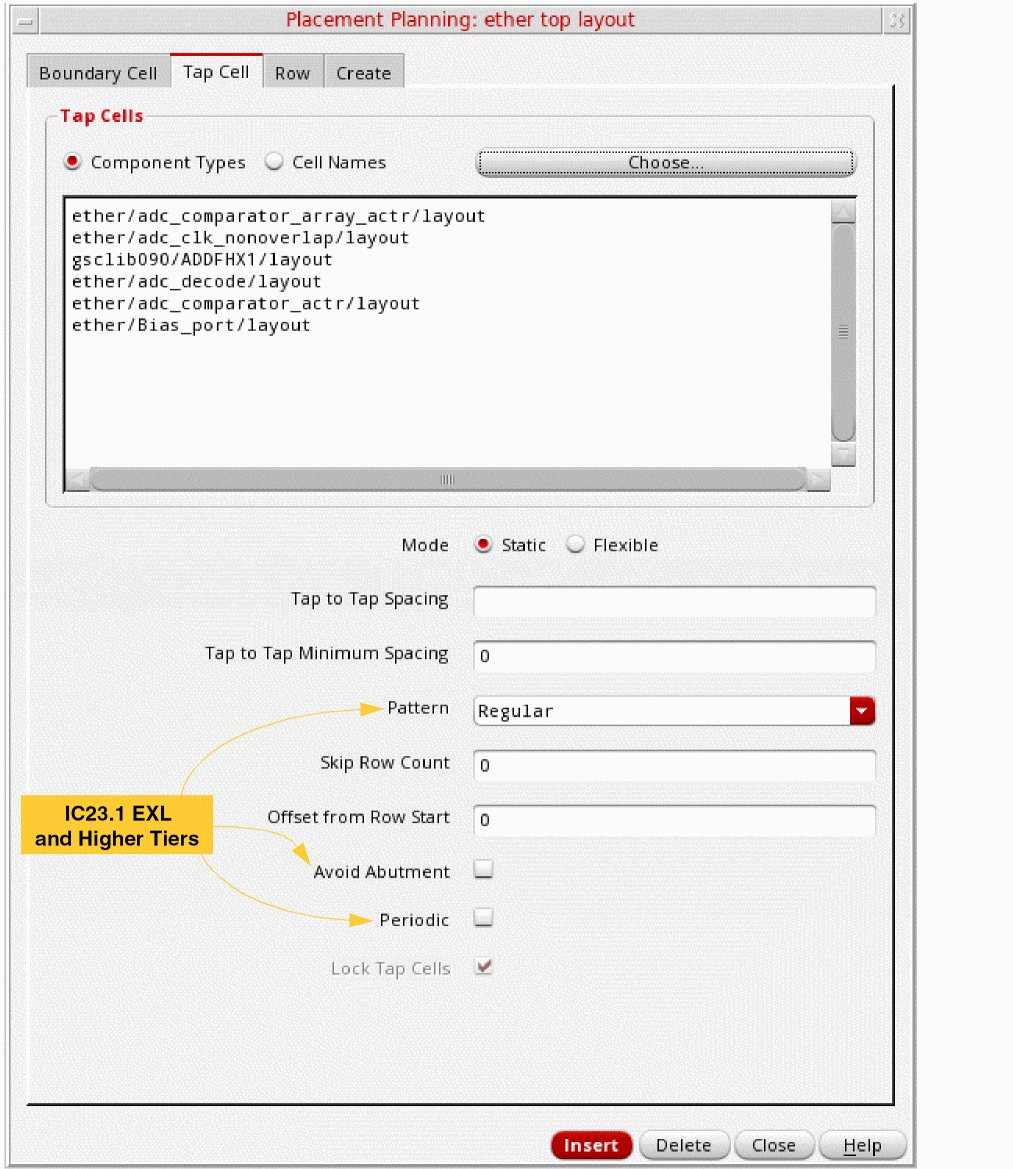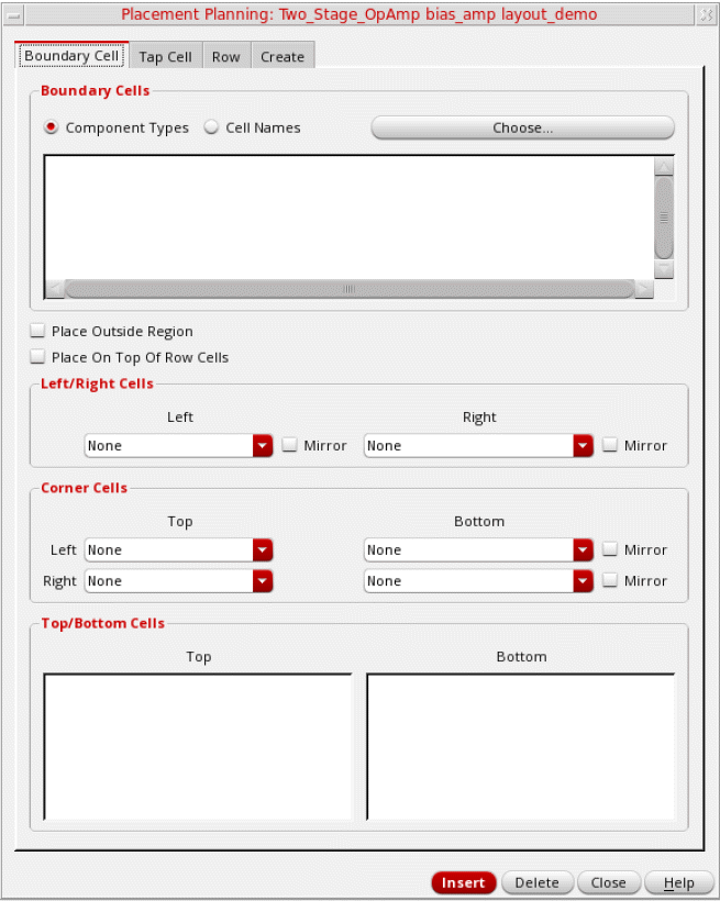 Click Insert.For more information about the boundary cell types, depending on the position of the boundary cell relative to the standard cell row, see Valid edge assignments in CPH window.