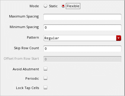 After defining the Boundary Cell, Tap Cell, and Row parameters, the final step is to define the generic placement settings before running the command. Use the options on the Create tab to define the generic settings.