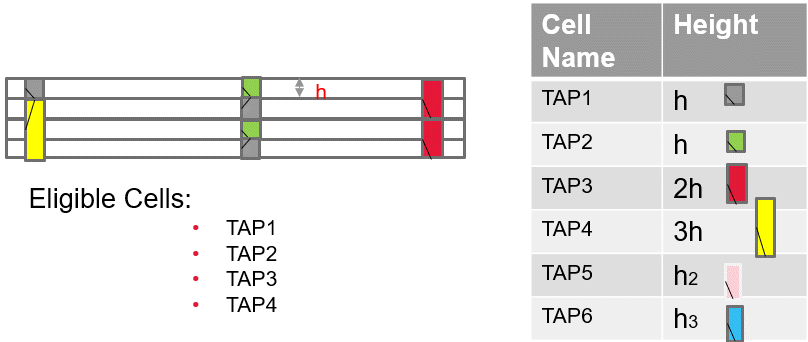 For example, if the cell heights are 3.0, 6.0, 9.0, and 12.0; the placer creates rows of height 3.0 because that is the height of the single-height cell.