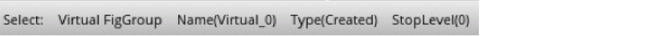 The corresponding object is selected in the layout canvas. The Show Selection Info toolbar updates to display appropriate information related to the selected virtual group, such as display name, type of virtual group—Generated, Clone, or Created, placement status, and the display stop level value.