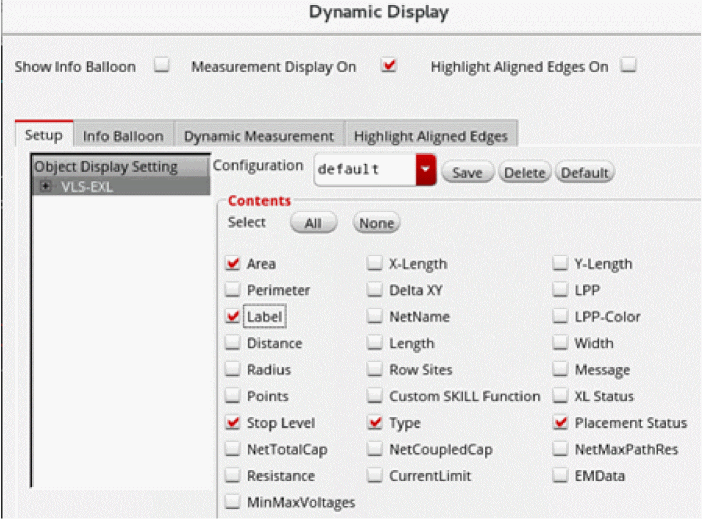 To display the delta x, y measurements dynamically, you must also select them for display in the information balloon.