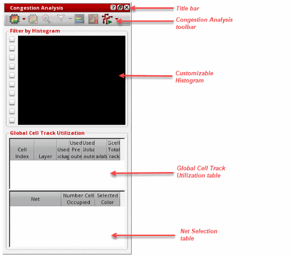 The main components of the Congestion Analysis assistant user interface are shown in the following figure.
