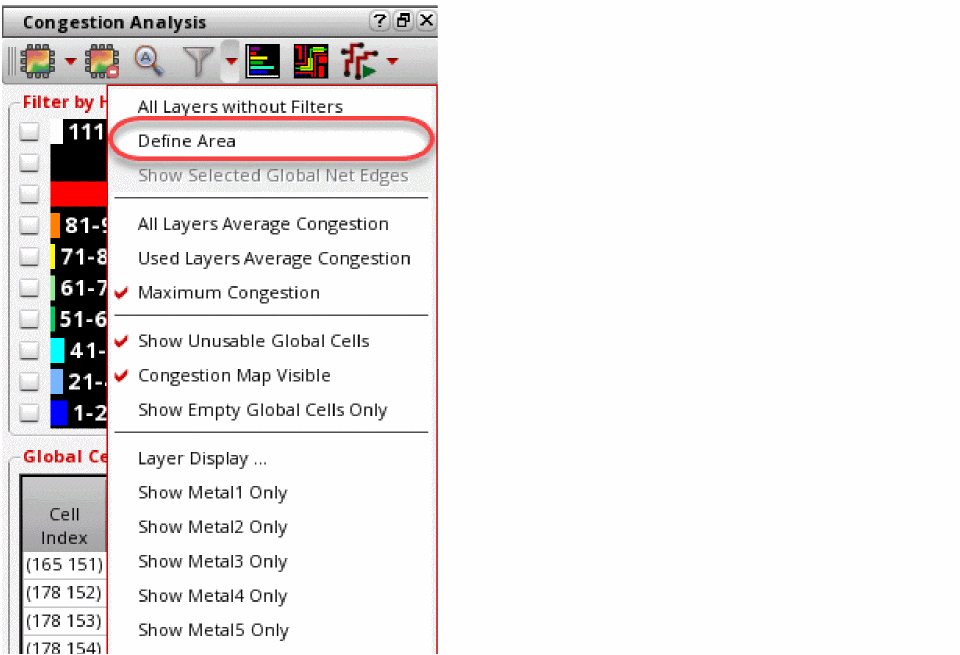 - Click the drop-down arrow next to the Filter Global Cells By icon on the Congestion Analysis toolbar.