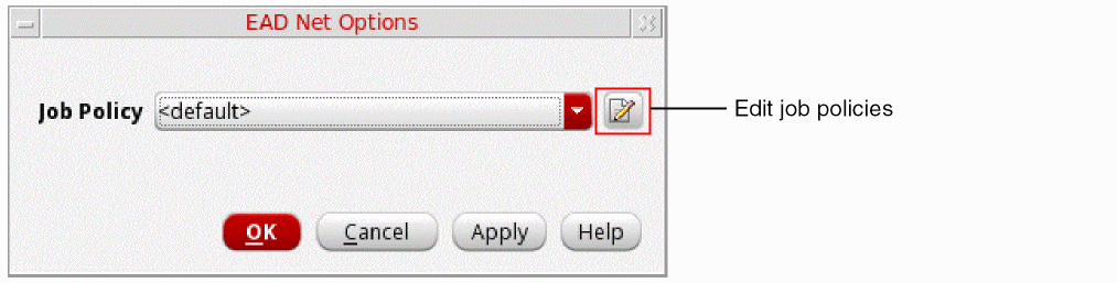 The You can also select different policies for different nets. Click the Edit job policies icon next to the Job Policy field to open the EAD Job Policy Editor form. |