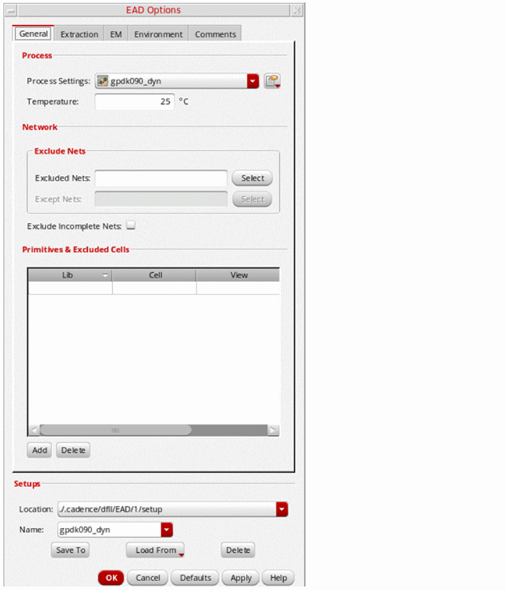 - General tab and DSPF tab when you use the Build Parasitic/LDE Netlist View command.